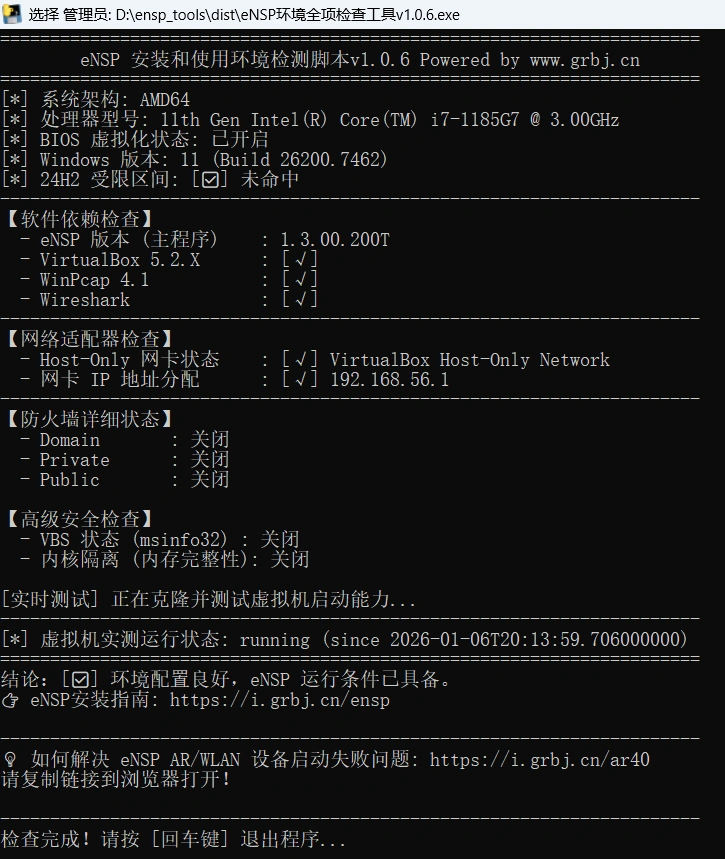 eNSP 安装运行环境检测脚本程序